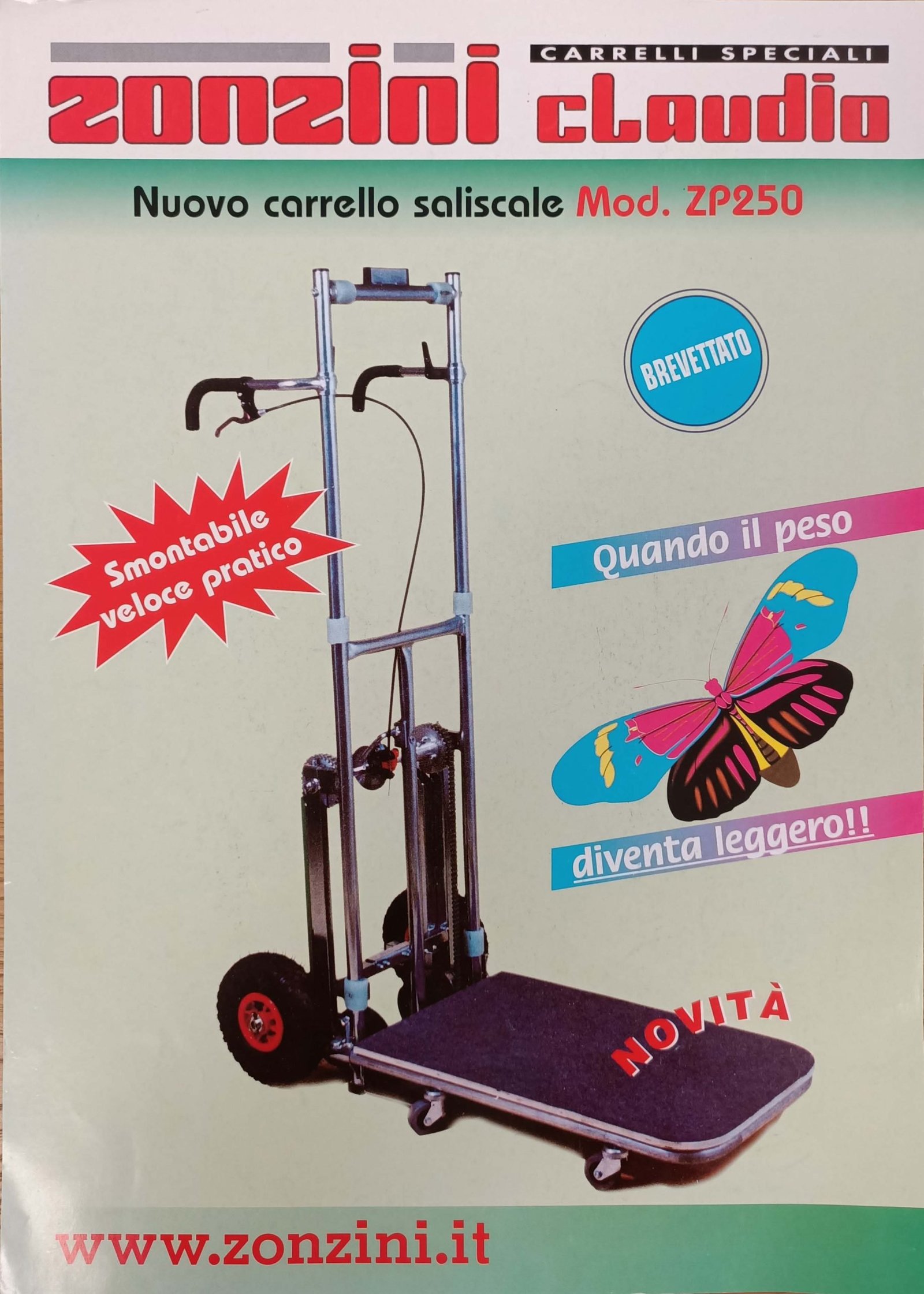 Zonzini Claudio, en 1997, decide continuar su camino enfocándose en el diseño y la producción de carretillas sube escadas. La creciente demanda y las dificultades que enfrentaban los instaladores y mudanceros llevaron a enfocar la atención en un tema que se convertiría en central en la actividad de Zonzini a partir de ese momento: el transporte por escaleras. Así nació la primera carretilla sube escadas manual con orugas, el modelo ZP250.