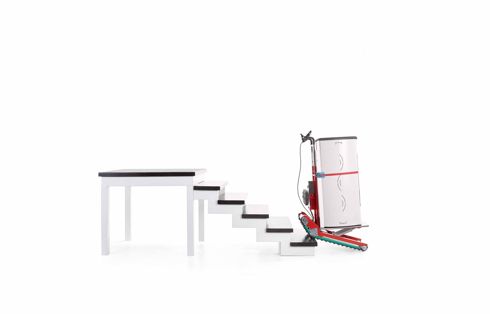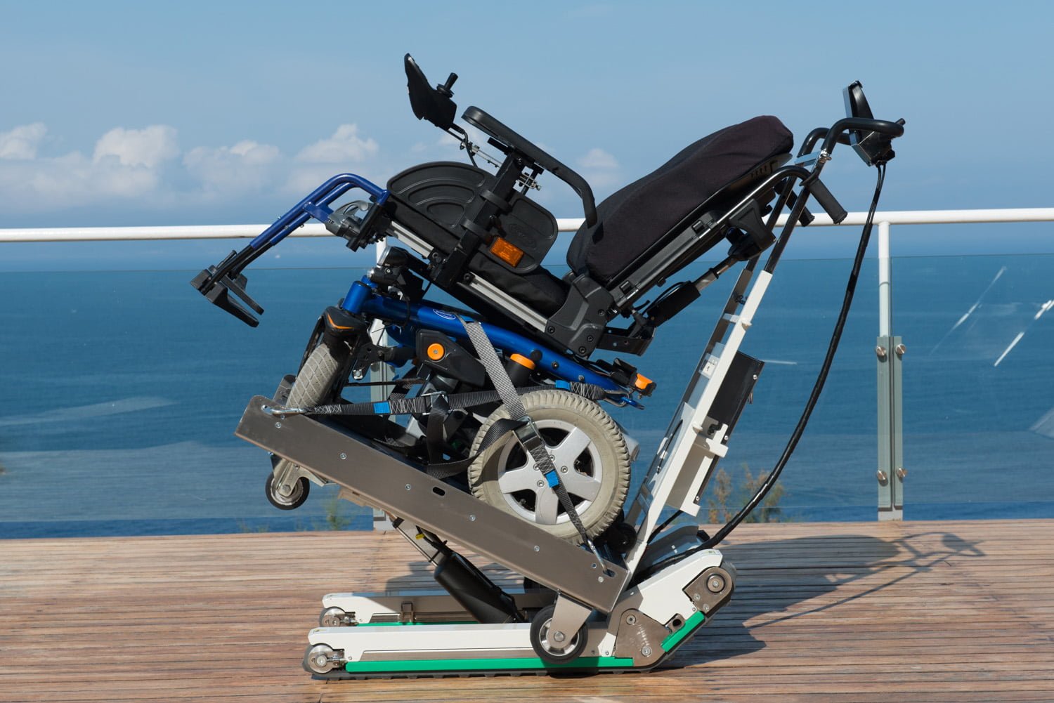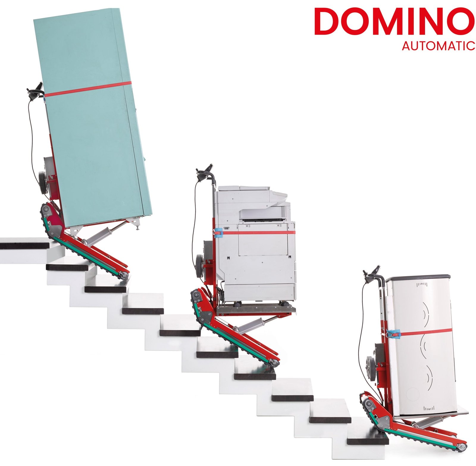 La evolución natural de una carretilla sube escadas con orugas tan fácil de usar y segura como el Domino Automatic fue la adaptación para el transporte de sillas de ruedas electrónicas y manuales. Esta adaptación ha permitido a muchas personas que normalmente se desplazan con sillas de ruedas electrónicas pesadas poder ser transportadas por escaleras de diversos tipos sin necesidad de un ascensor o un montacargas.