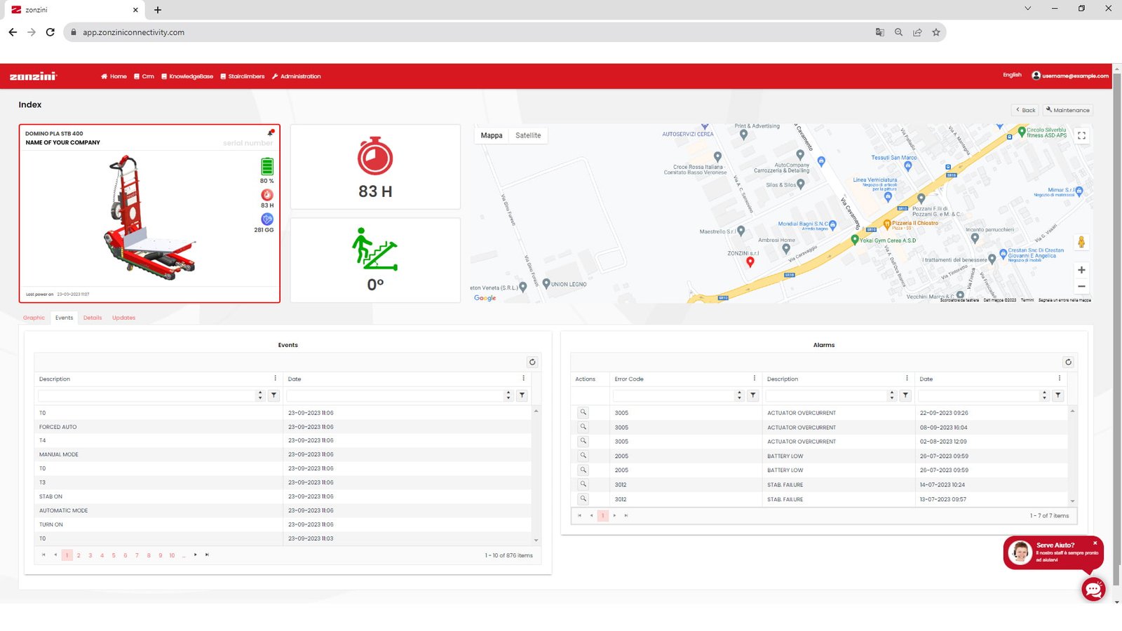 La nuova connettività di Zonzini rivoluziona l'industria dei carrelli saliscale, offrendo un controllo senza precedenti sui carrelli grazie al diretto accesso del proprietario ai suoi report di utilizzo. La registrazione del dispositivo garantisce un collegamento continuo tra cliente e casa madre, consentendo di risolvere rapidamente eventuali criticità. Grazie agli aggiornamenti software da remoto e alla connessione accessibile già tramite una rete 2G, presente in quasi tutto il mondo, è possibile monitorare e gestire la propria flotta in tempo reale, ovunque.
