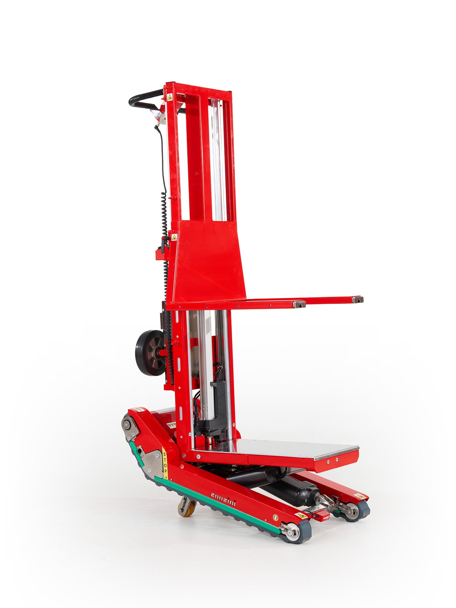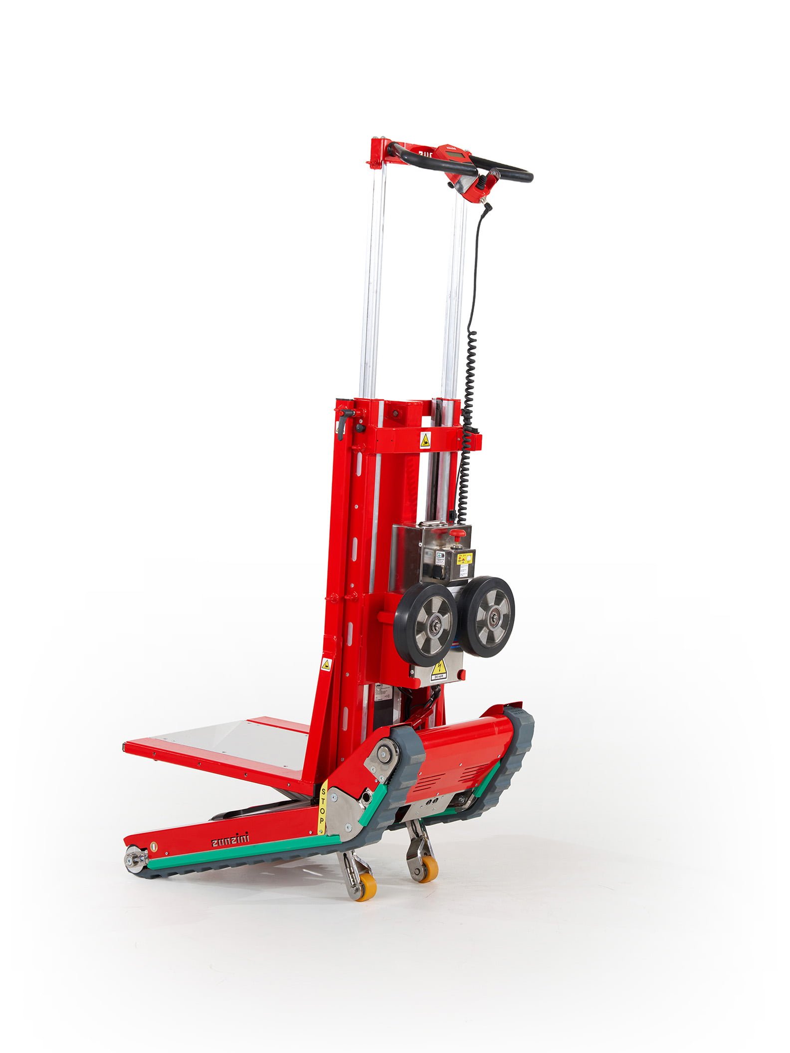 El departamento de innovación de Zonzini siempre está bajo presión para mejorar constantemente no solo la fiabilidad de toda la gama de productos, sino también, y sobre todo, la experiencia del usuario. En 2015, el modelo Domino recibe una importante actualización y se convierte en Domino Automatic. El nuevo diseño en color rojo Zonzini lo hace inconfundible e inmediatamente reconocible. La función Automatic ajusta la plataforma de carga de manera autónoma, permitiendo por primera vez en la historia que un operador guíe una carga de hasta 400 kg por la escalera moviendo simplemente un joystick. Domino Automatic se demostrará probablemente como una de las mejores carretillas sube escadas eléctricas jamás construidas hasta entonces.